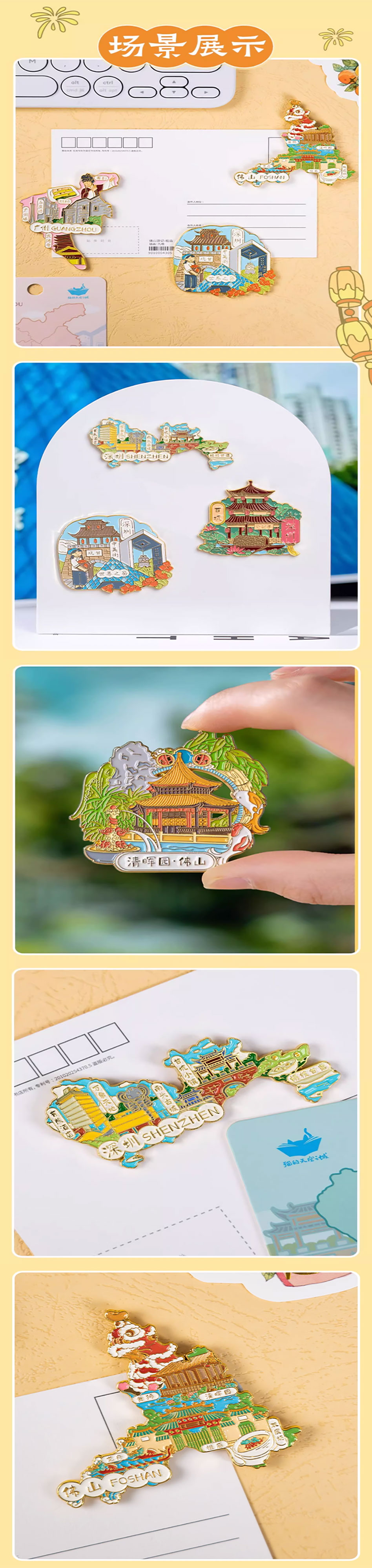 广州文创城市周边纪念品盒装金属冰箱贴-印象广州地图款